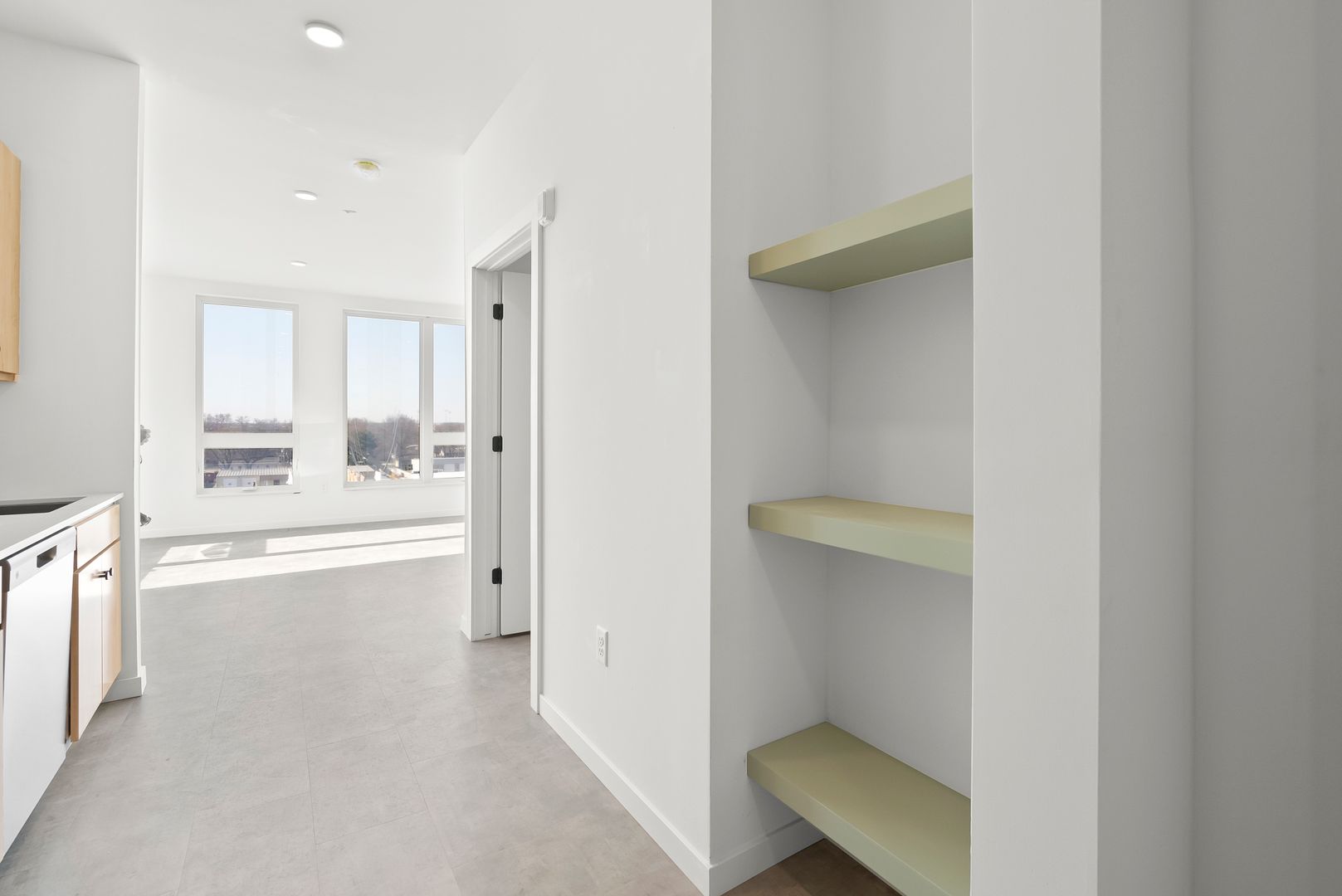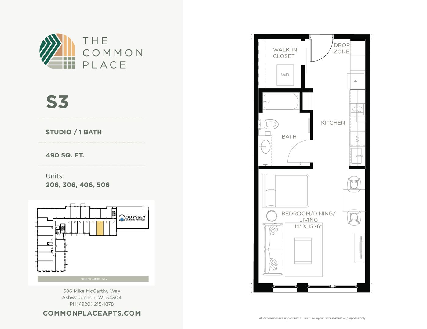 This is a studio unit in the Common Place, a 5-story mixed-use building located in the Village of Ashwaubenon's Sports & Entertainment District, just blocks from Lambeau Field & Titletown amenities. The property has 88 residential units and a recreational climbing gym. All units are equipped with in-unit washer & dryer, dishwasher, and select units have balconies. A limited number of our studios also have murphy beds. Ask us about fully furnished units! The Common Place is a pet-friendly property.