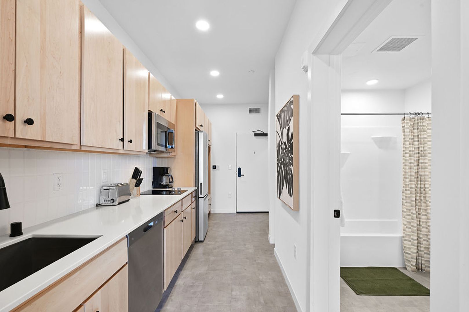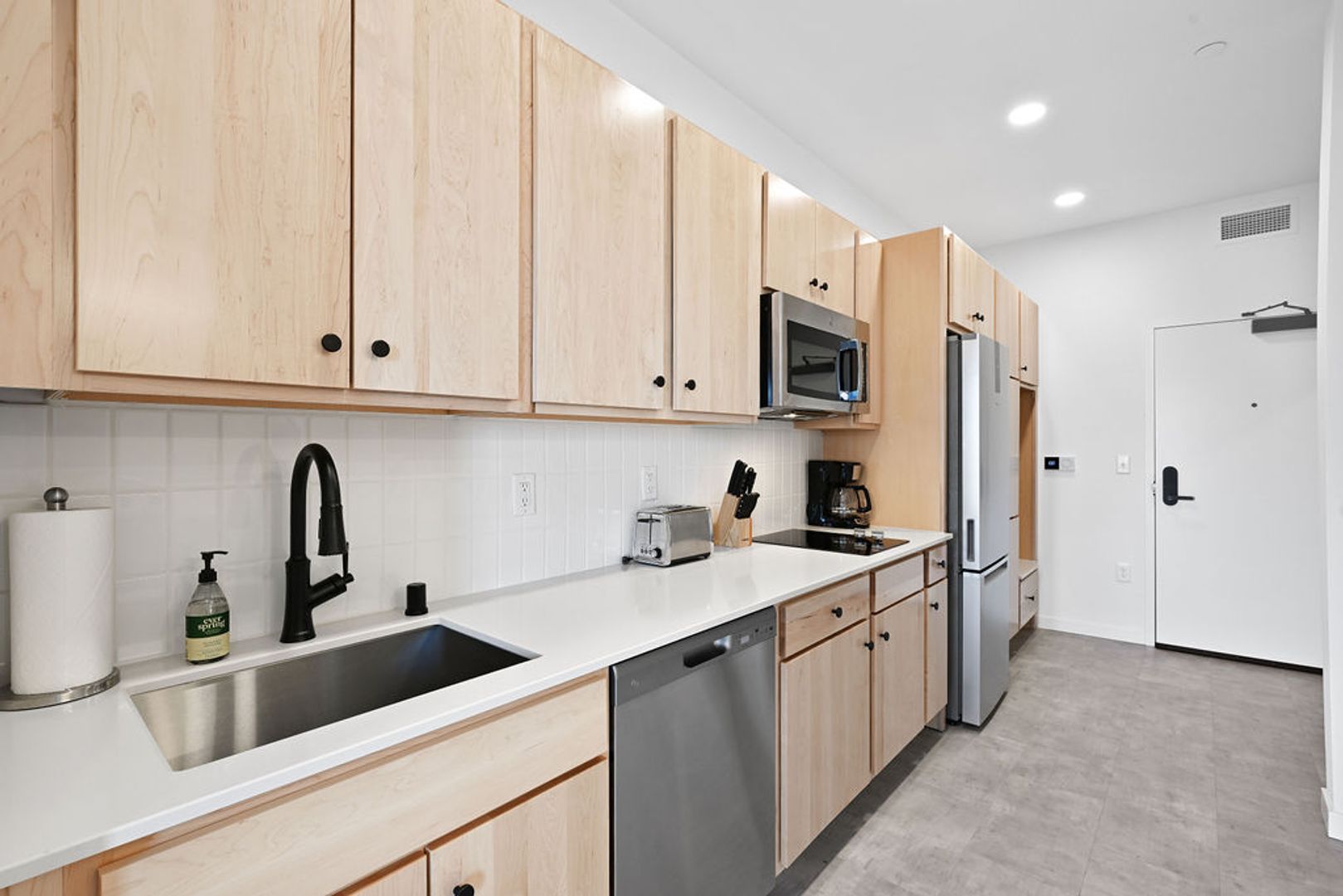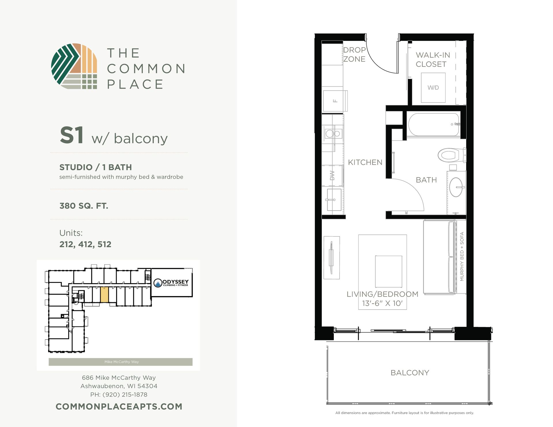 This is a studio unit in the Common Place, a 5-story mixed-use building located in the Village of Ashwaubenon's Sports & Entertainment District, just blocks from Lambeau Field & Titletown amenities. The property has 88 residential units and a recreational climbing gym. All units are equipped with in-unit washer & dryer, dishwasher, and select units have balconies. A limited number of our studios also have murphy beds. Ask us about fully furnished units! The Common Place is a pet-friendly property.