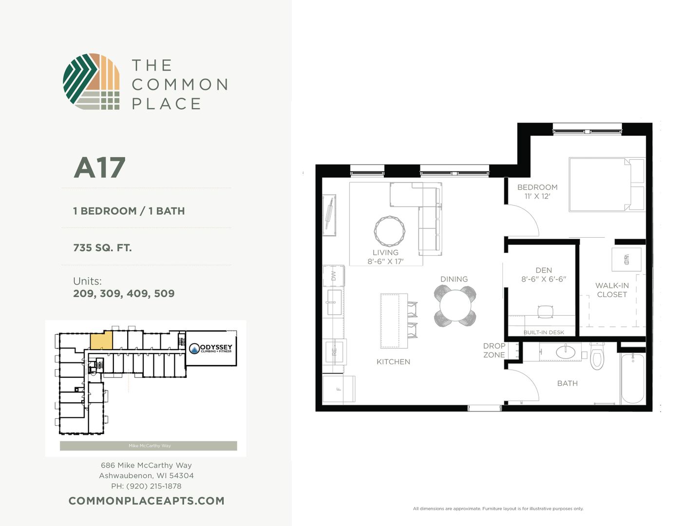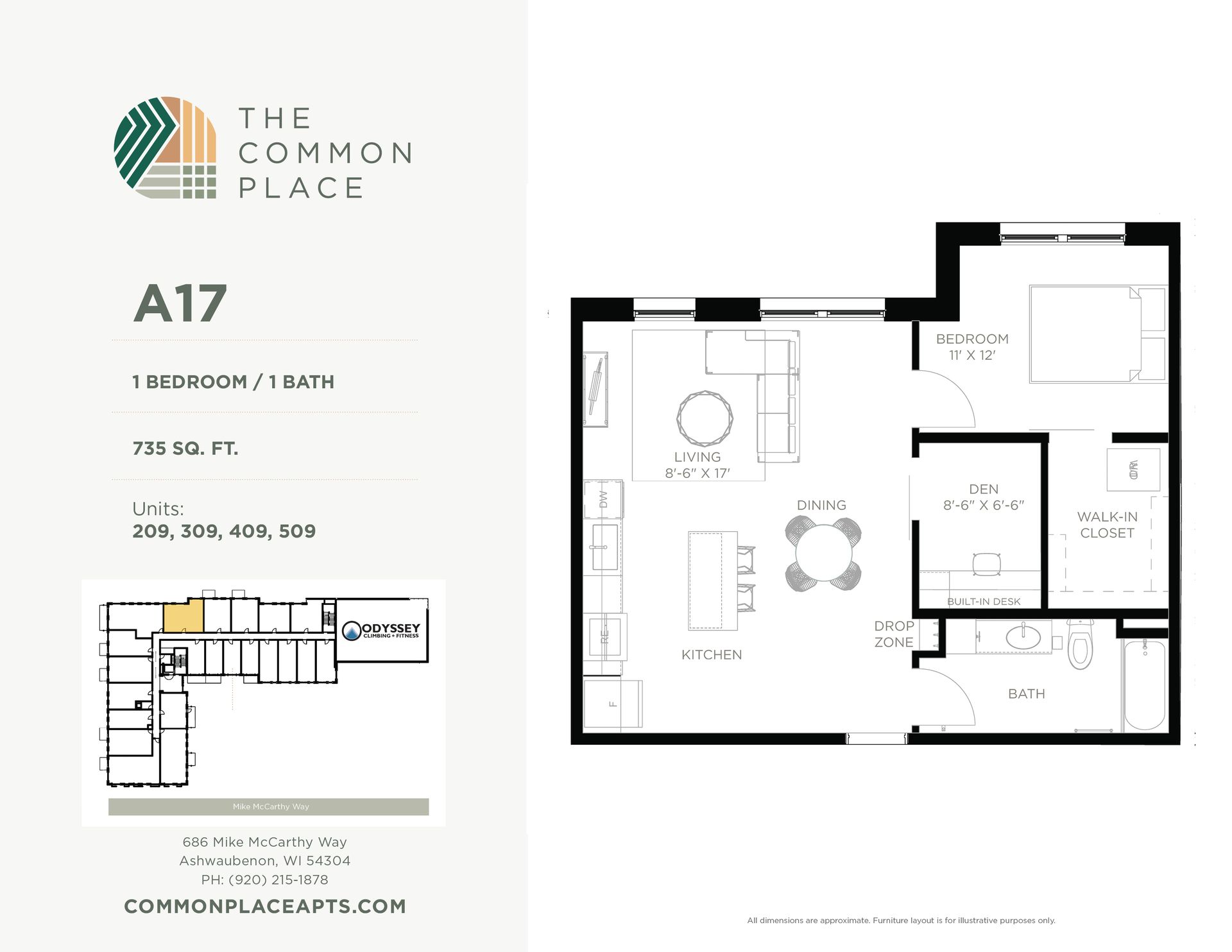 This is a 1 bedroom, 1 bathroom unit in the Common Place, a 5-story mixed-use building located in the Village of Ashwaubenon's Sports & Entertainment District, just blocks from Lambeau Field & Titletown amenities. The property has 88 residential units and a recreational climbing gym. All units are equipped with in-unit washer & dryer, dishwasher, and select units have balconies. A limited number of our studios also have murphy beds. Ask us about fully furnished units! The Common Place is a pet-friendly property.