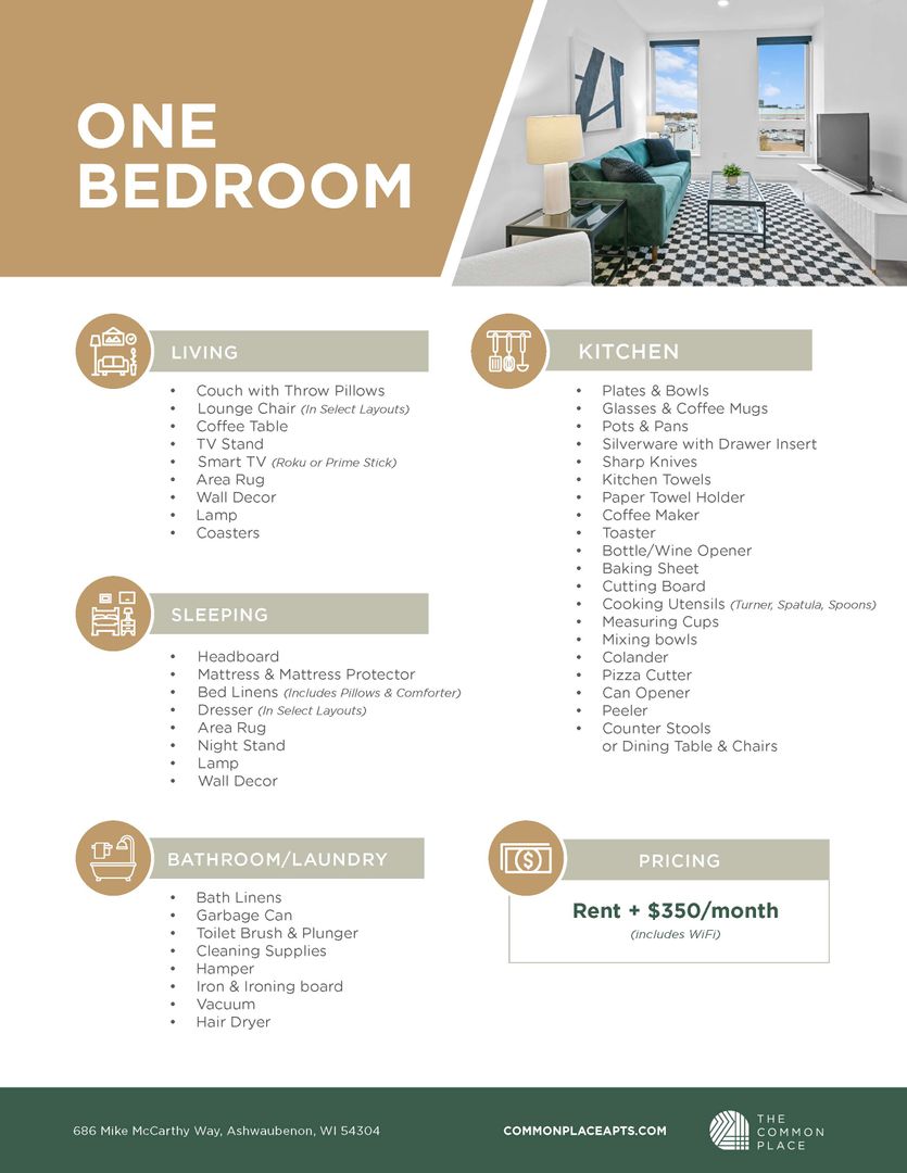This is a 1 bedroom, 1 bathroom unit in the Common Place, a 5-story mixed-use building located in the Village of Ashwaubenon's Sports & Entertainment District, just blocks from Lambeau Field & Titletown amenities. The property has 88 residential units and a recreational climbing gym. This unit is equipped with in-unit washer & dryer and dishwasher. The Common Place is a pet-friendly property.