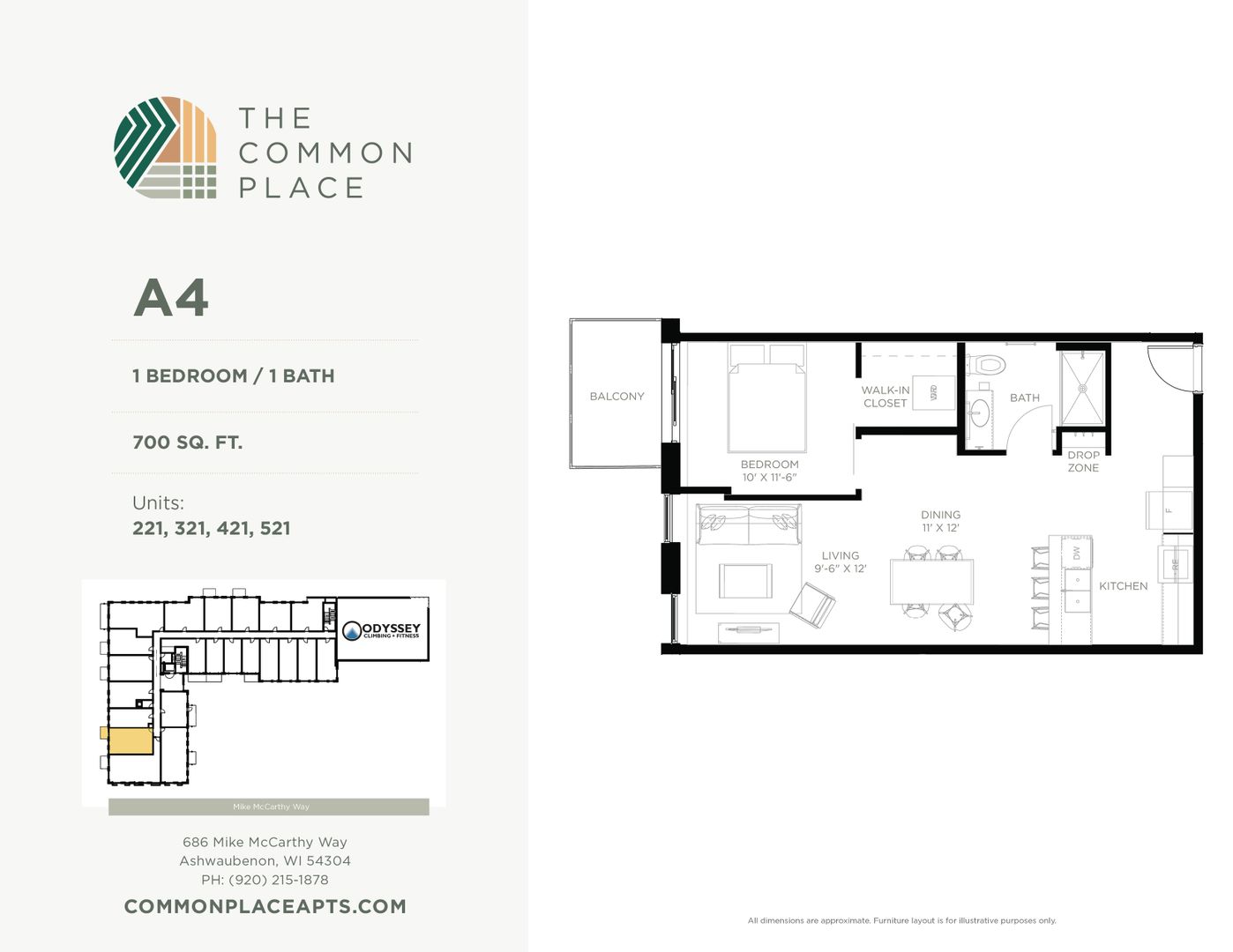 This is a fully furnished 1 bedroom, 1 bathroom unit in the Common Place, a 5-story mixed-use building located in the Village of Ashwaubenon's Sports & Entertainment District, just blocks from Lambeau Field & Titletown amenities. The property has 88 residential units and a recreational climbing gym. All units are equipped with in-unit washer & dryer, dishwasher, and select units have balconies. The Common Place is a pet-friendly property.