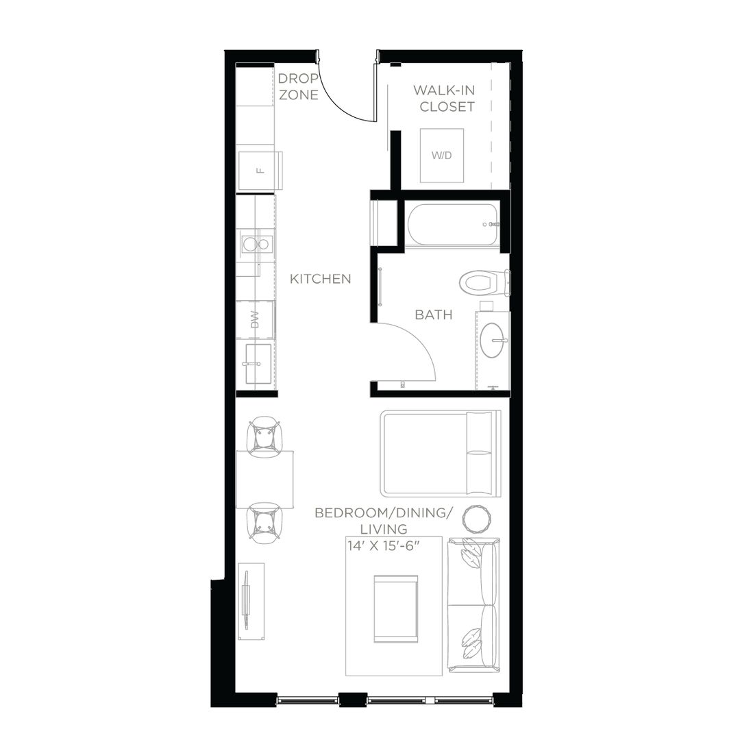 This is a studio unit in the Common Place, a 5-story mixed-use building located in the Village of Ashwaubenon's Sports & Entertainment District, just blocks from Lambeau Field & Titletown amenities. The property has 88 residential units and a recreational climbing gym. All units are equipped with in-unit washer & dryer, dishwasher, and select units have balconies. A limited number of our studios also have murphy beds. Ask us about fully furnished units! The Common Place is a pet-friendly property.