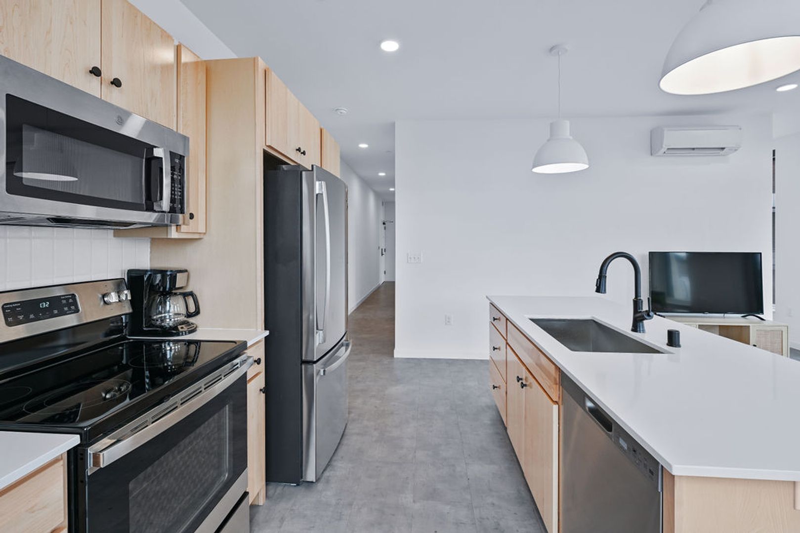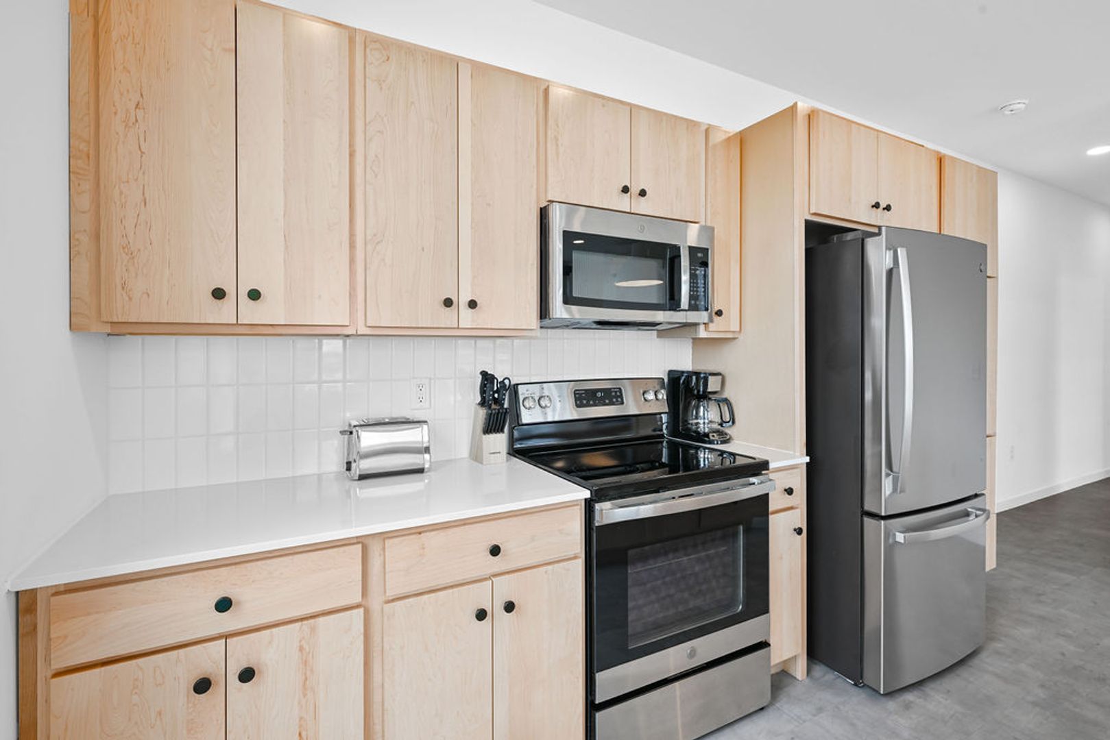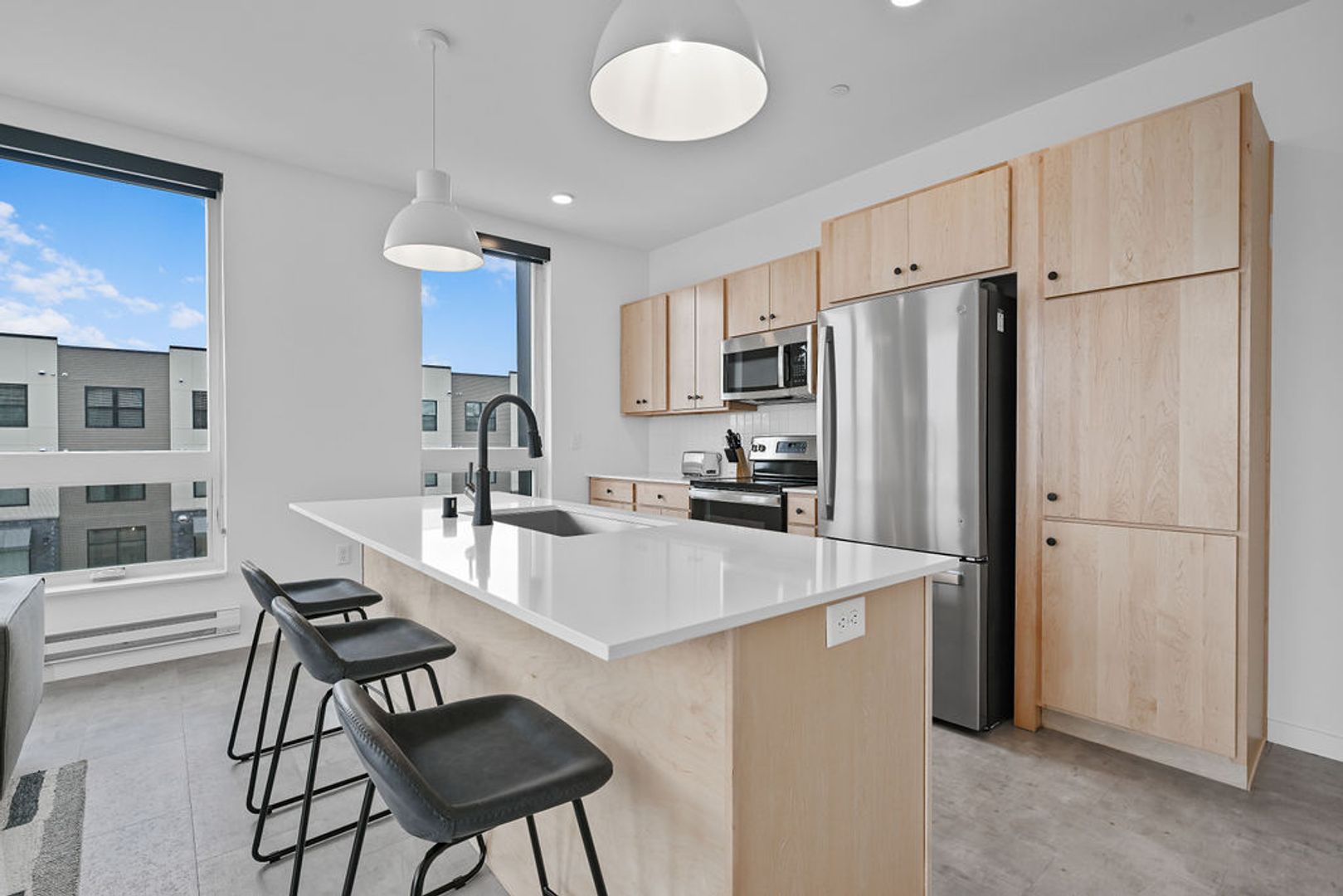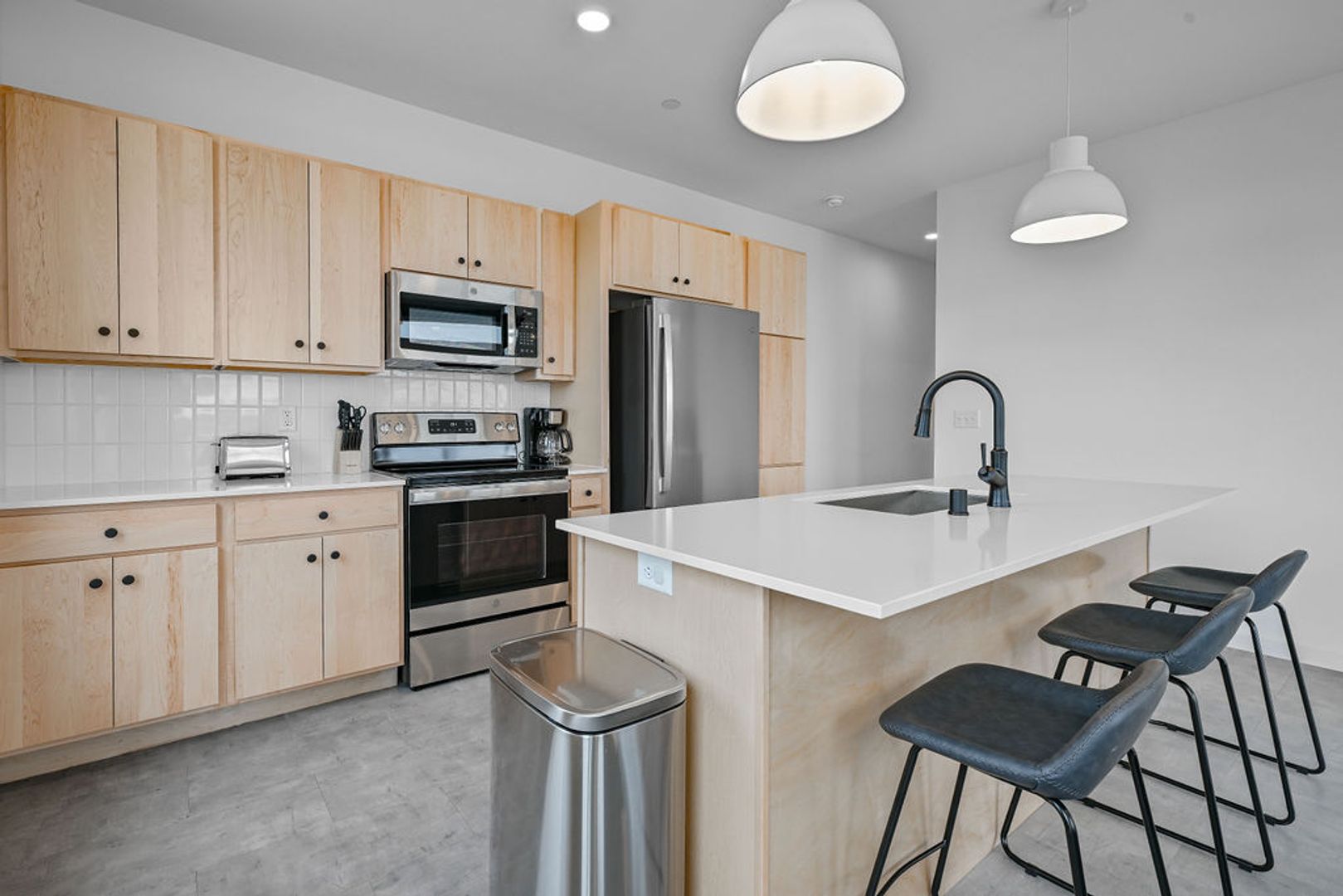This is a 2 bedroom, 1 bathroom unit in the Common Place, a 5-story mixed-use building located in the Village of Ashwaubenon's Sports & Entertainment District, just blocks from Lambeau Field & Titletown amenities. The property has 88 residential units and a recreational climbing gym. All units are equipped with in-unit washer & dryer, dishwasher, and select units have balconies. A limited number of our studios also have murphy beds. Ask us about fully furnished units! The Common Place is a pet-friendly property.
