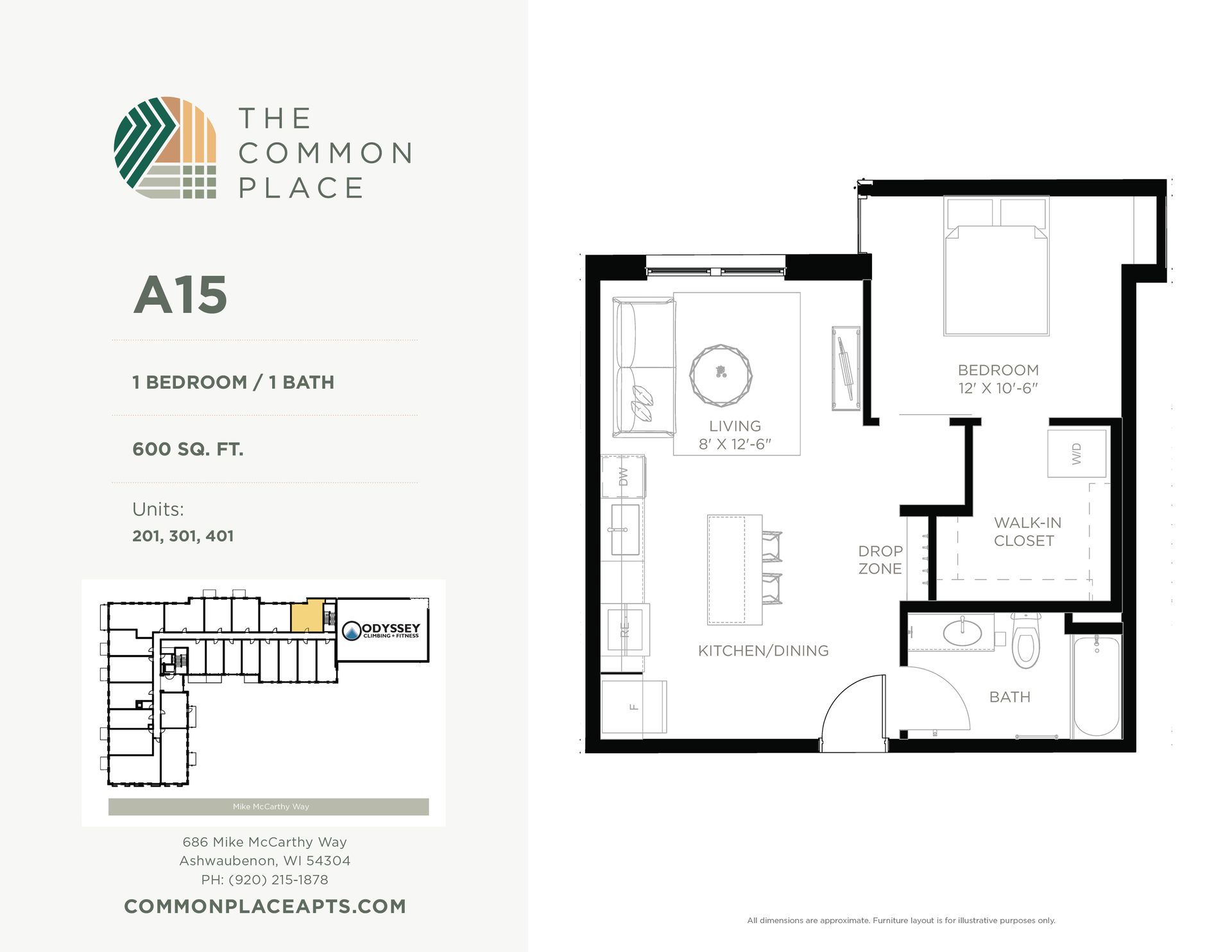 This is a 1 bedroom, 1 bathroom unit in the Common Place, a 5-story mixed-use building located in the Village of Ashwaubenon's Sports & Entertainment District, just blocks from Lambeau Field & Titletown amenities. The property has 88 residential units and a recreational climbing gym. All units are equipped with in-unit washer & dryer, dishwasher, and select units have balconies. A limited number of our studios also have murphy beds. Ask us about fully furnished units! The Common Place is a pet-friendly property.
