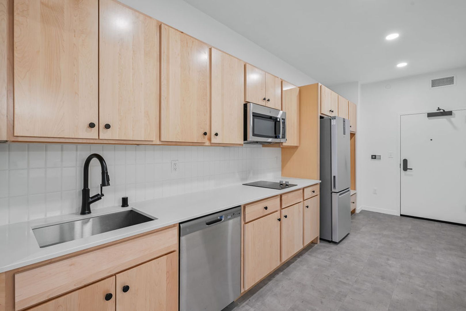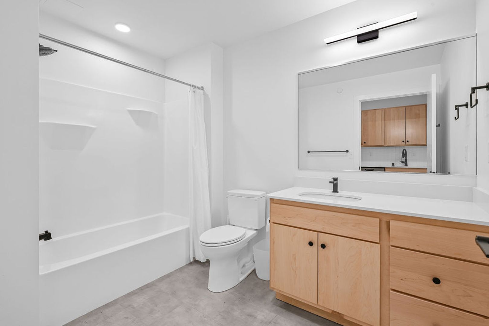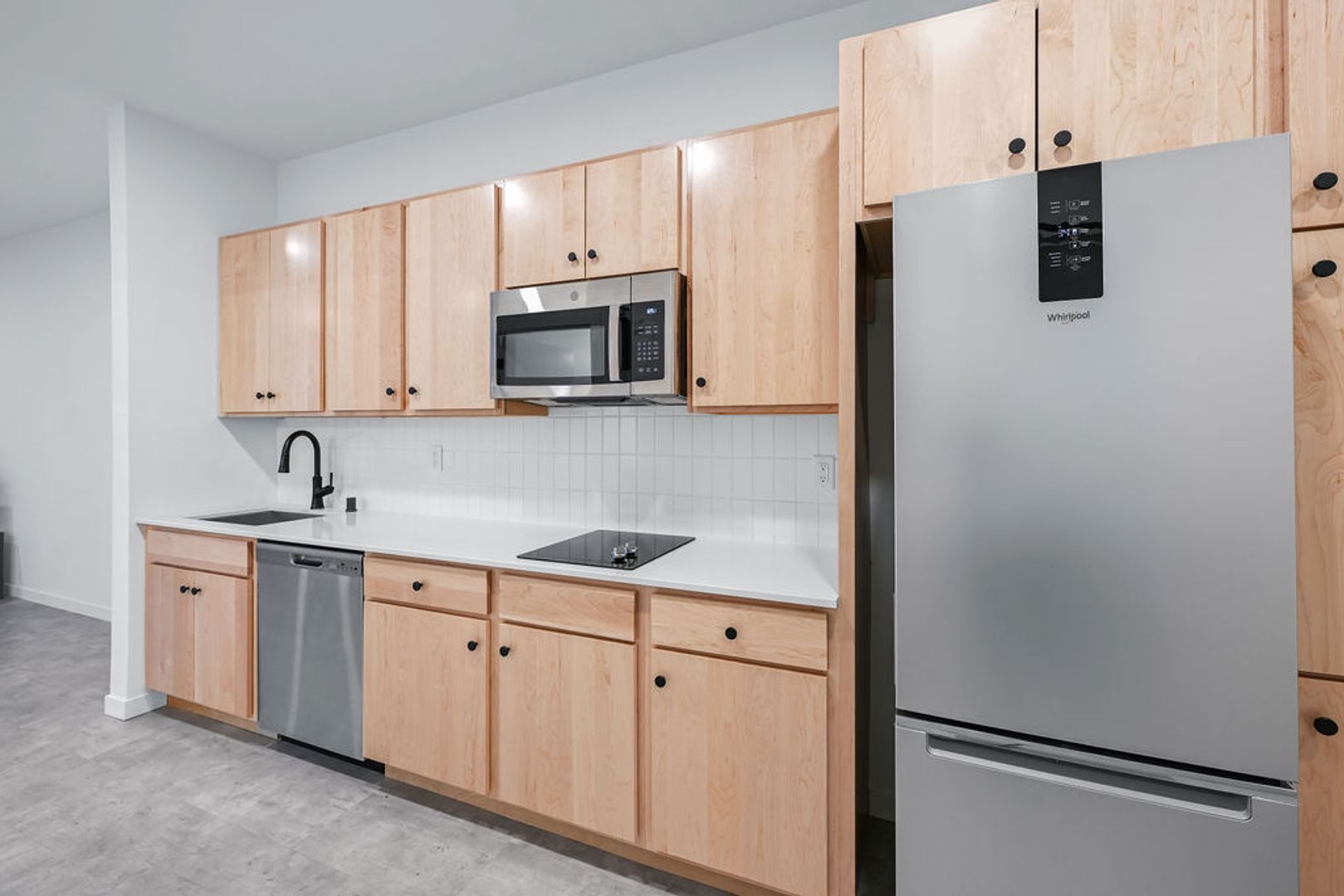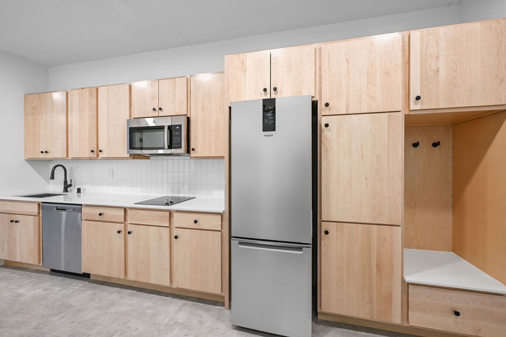 This is a studio unit in the Common Place, a 5-story mixed-use building located in the Village of Ashwaubenon's Sports & Entertainment District, just blocks from Lambeau Field & Titletown amenities. The property has 88 residential units and a recreational climbing gym. All units are equipped with in-unit washer & dryer, dishwasher, and select units have balconies. A limited number of our studios also have murphy beds. Ask us about fully furnished units! The Common Place is a pet-friendly property.
