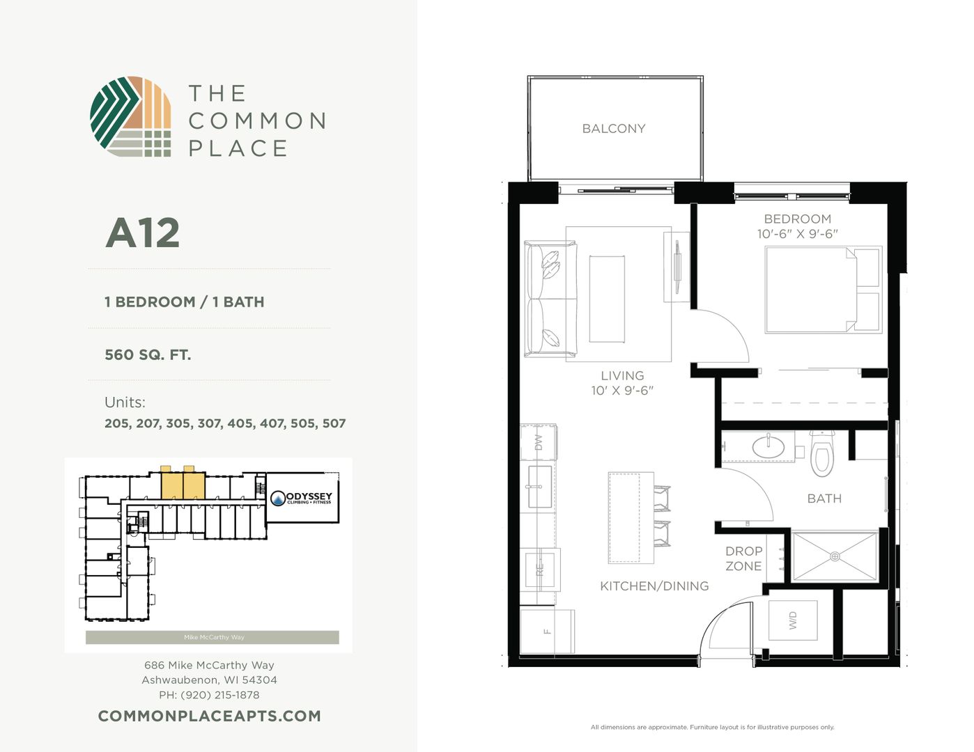 This is a 1 bedroom, 1 bathroom unit in the Common Place, a 5-story mixed-use building located in the Village of Ashwaubenon's Sports & Entertainment District, just blocks from Lambeau Field & Titletown amenities. The property has 88 residential units and a recreational climbing gym. All units are equipped with in-unit washer & dryer, dishwasher, and select units have balconies. A limited number of our studios also have murphy beds. Ask us about fully furnished units! The Common Place is a pet-friendly property.