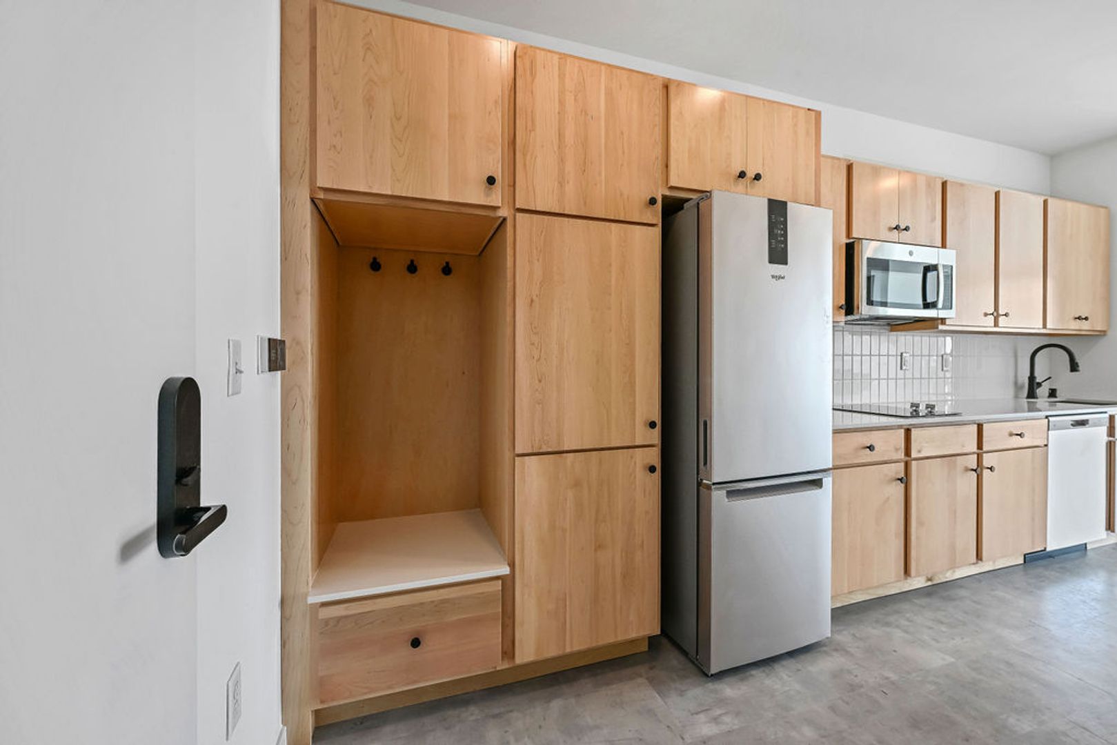 This is a studio unit in the Common Place, a 5-story mixed-use building located in the Village of Ashwaubenon's Sports & Entertainment District, just blocks from Lambeau Field & Titletown amenities. The property has 88 residential units and a recreational climbing gym. All units are equipped with in-unit washer & dryer, dishwasher, and select units have balconies. A limited number of our studios also have murphy beds. Ask us about fully furnished units! The Common Place is a pet-friendly property.