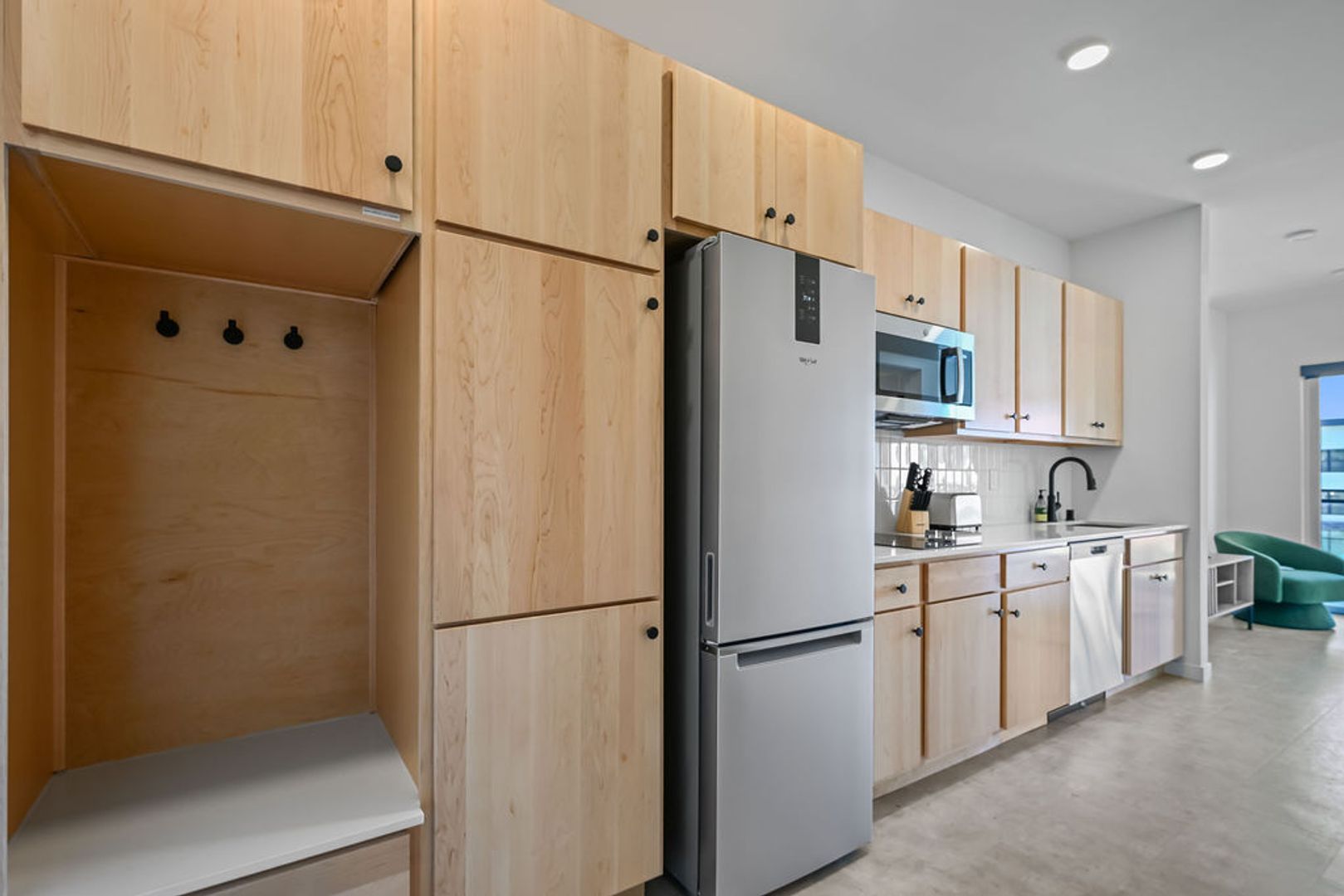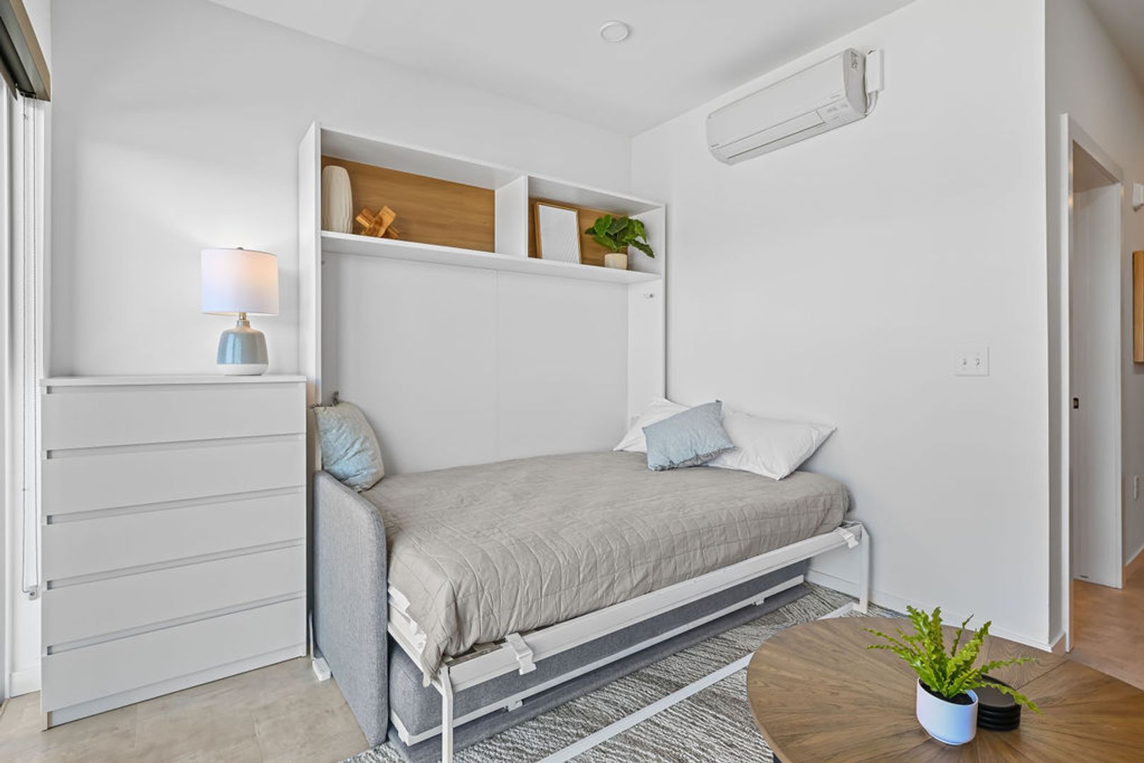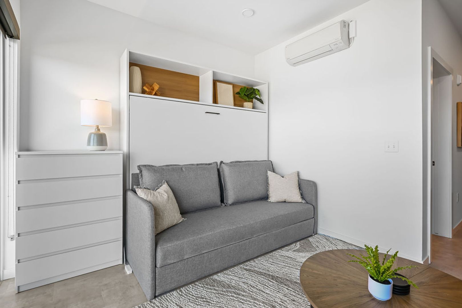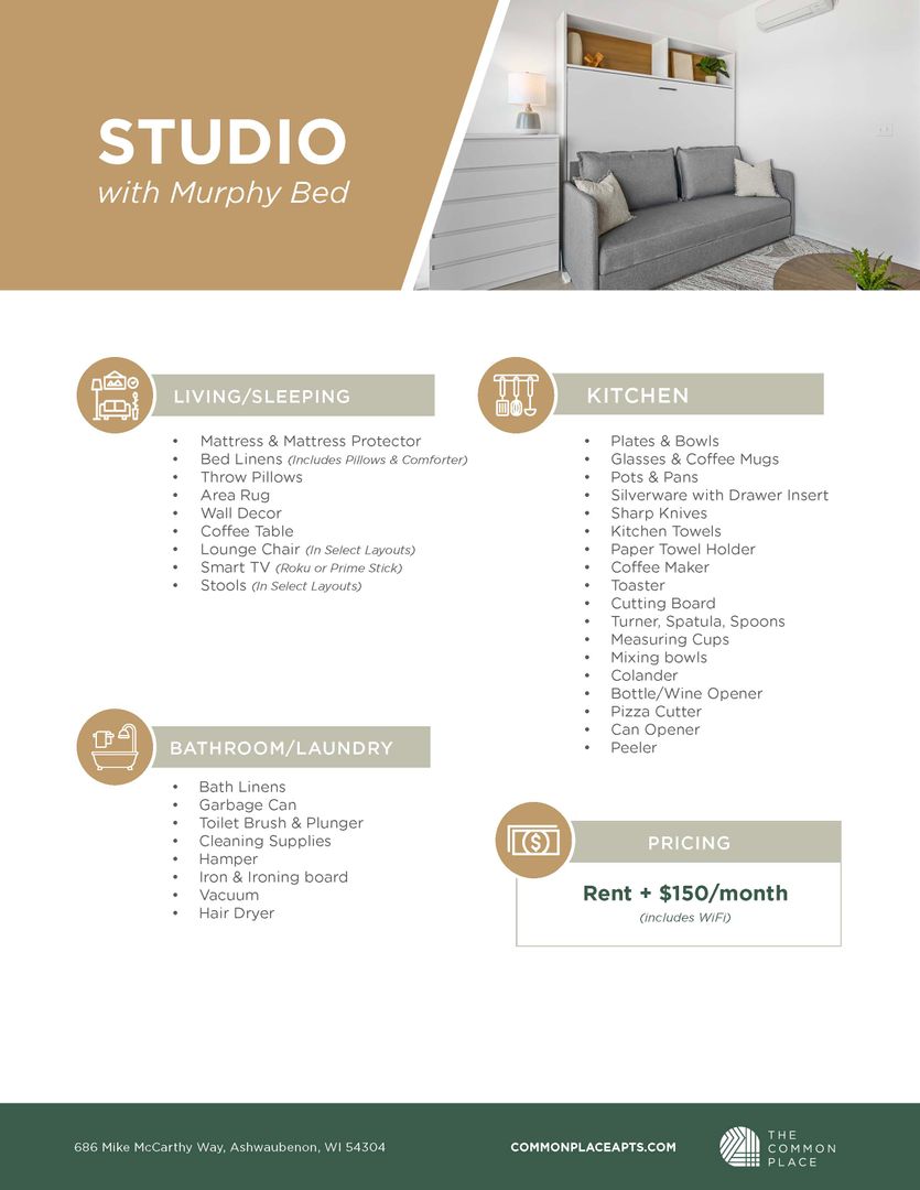 This unit includes a murphy bed and can be fully furnished for an additional fee of $150 a month.